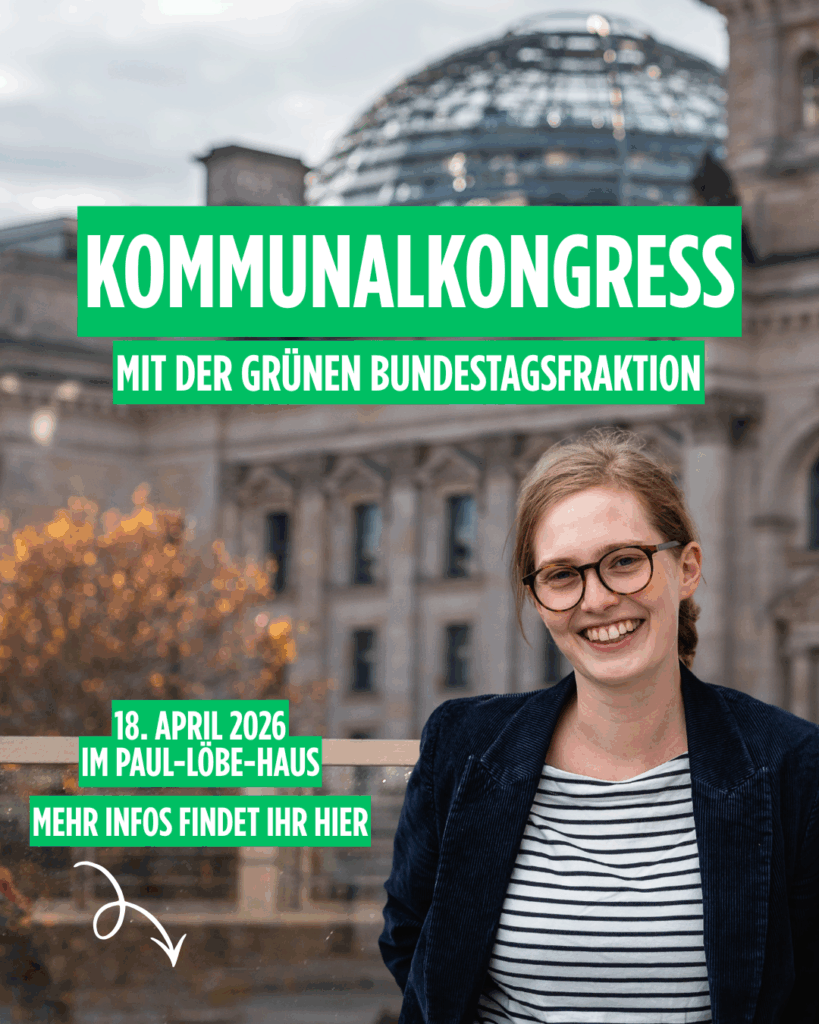 Ob Stadtteil oder Dorf – Lebenswert vor Ort! Unter diesem Motto veranstaltet die Grüne Bundestagsfraktion am 18. April 2026 zum zweiten Mal den Kommunalkongress. Ich freue mich jetzt schon sehr, euch in Berlin zu treffen! Auch aus der Bundestagsfraktion sind super viele Kolleg*innen dabei. 👯♀️